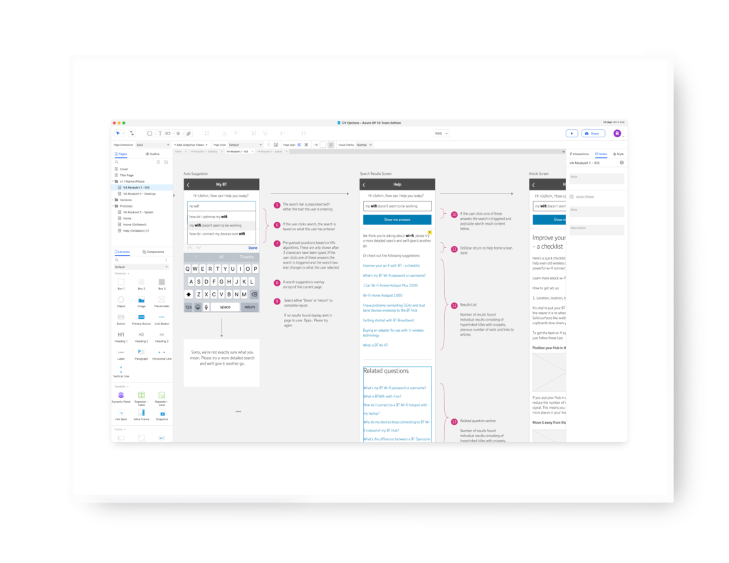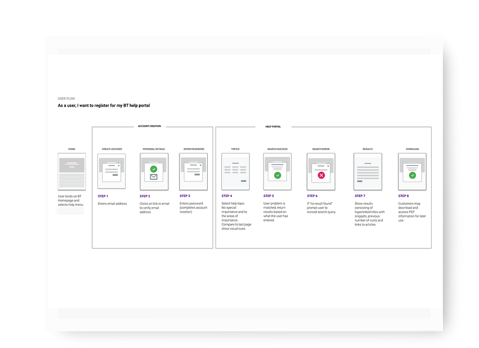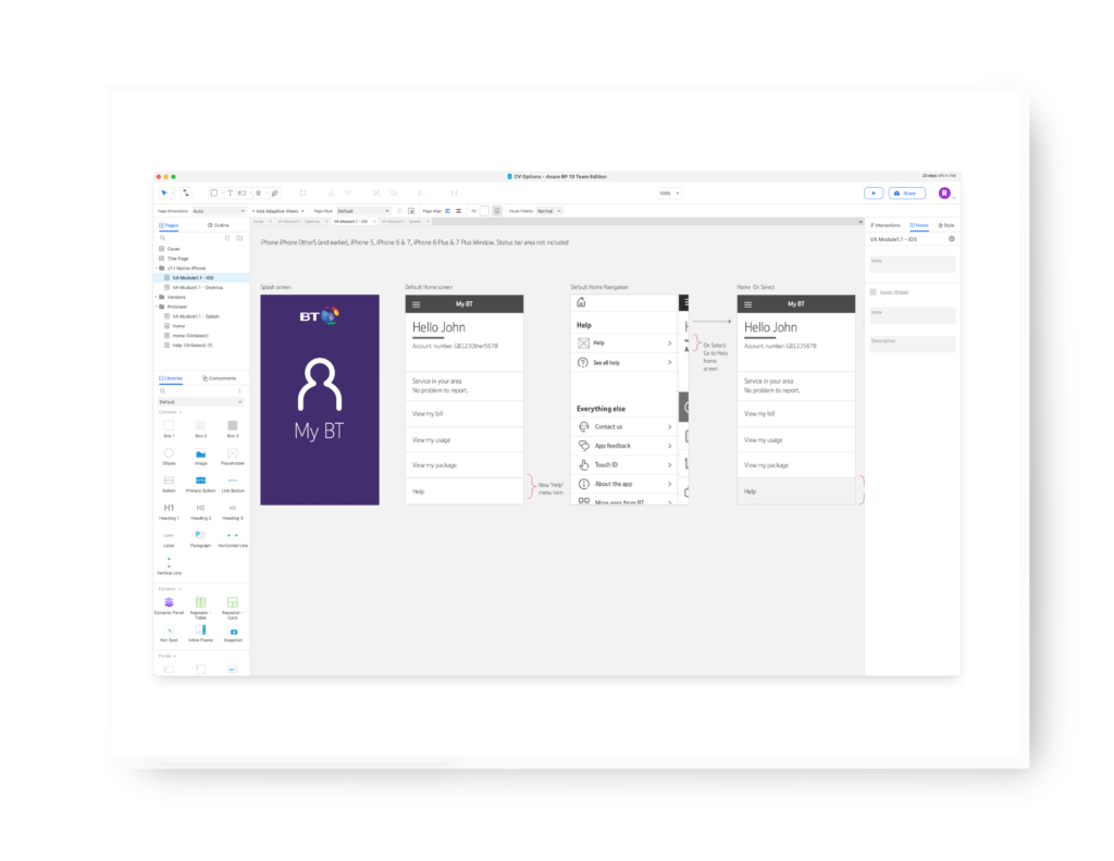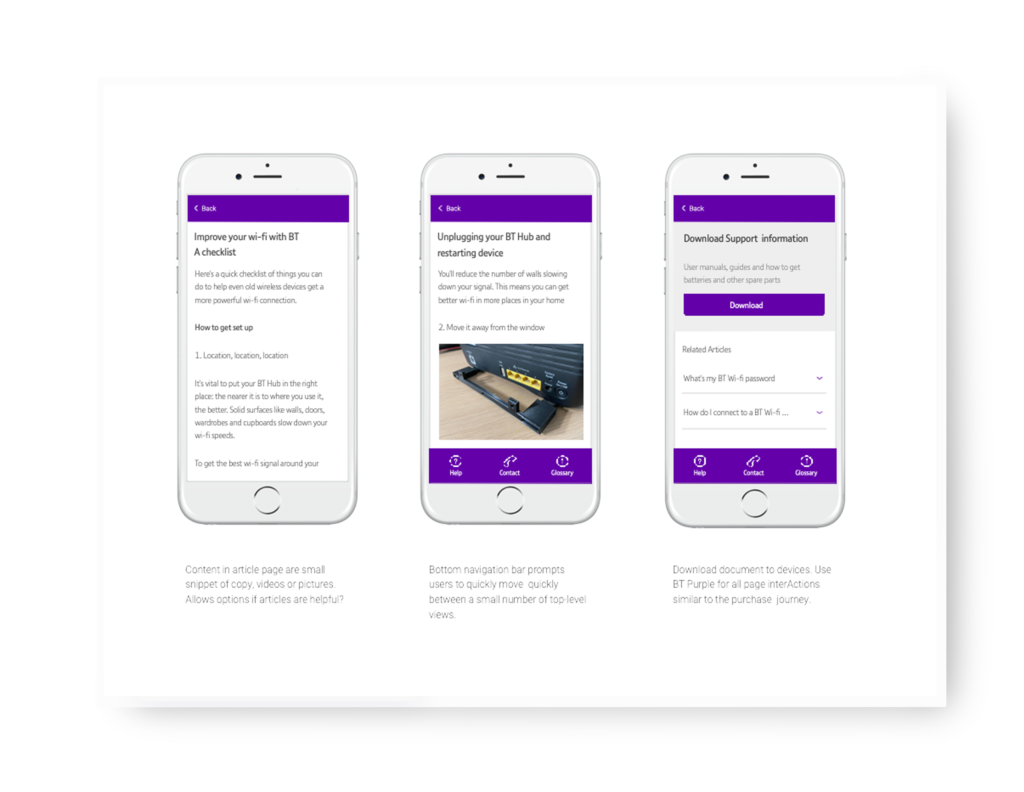 Using the BT’s design system I created navigation bar with links to Sign Up, Log In, View Plans, and Support.Interactions: Clickable buttons leading to respective screens. See here