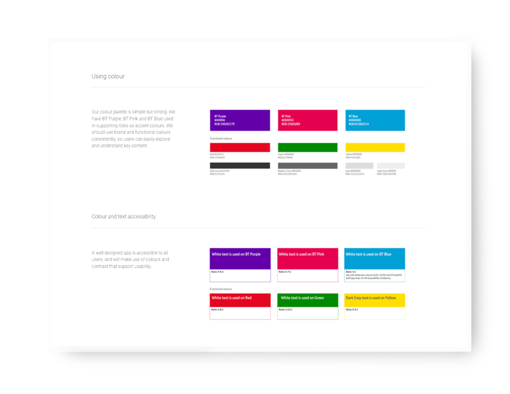 The new BT UI design features a clean, professional look with brand colors, modern typography, clear CTAs, and responsive layout.